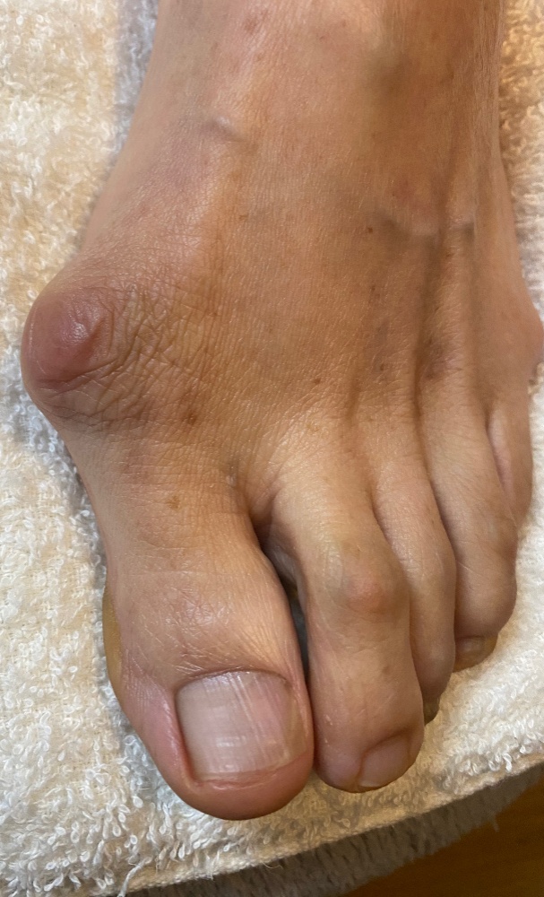 外反母趾の変形がある程度出来上がり痛みが出たり出なかったりを繰り返している時期が中期です。